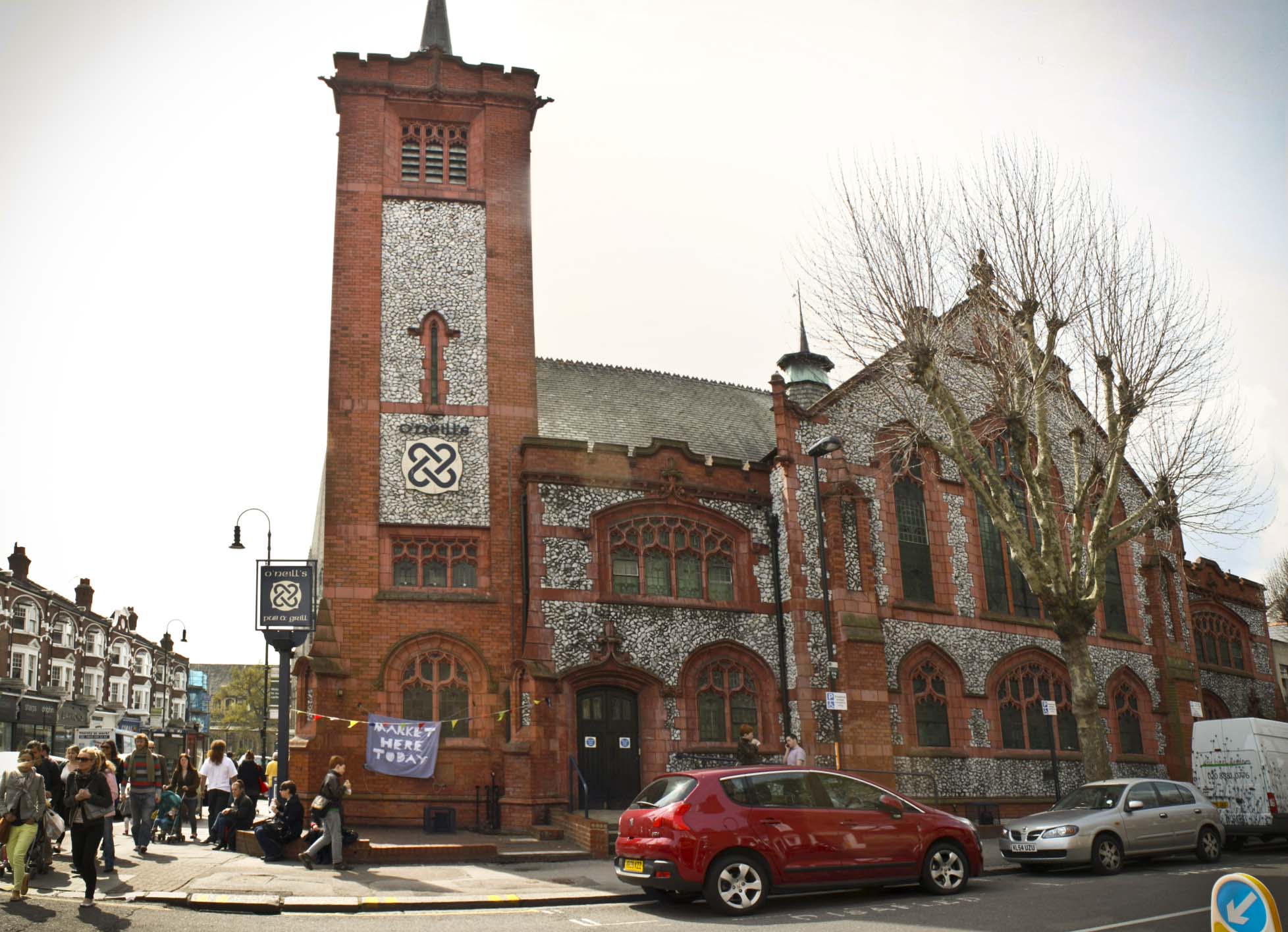 A bustling and atmospheric market at the 'The Village' in the heart of Muswell Hill Broadway