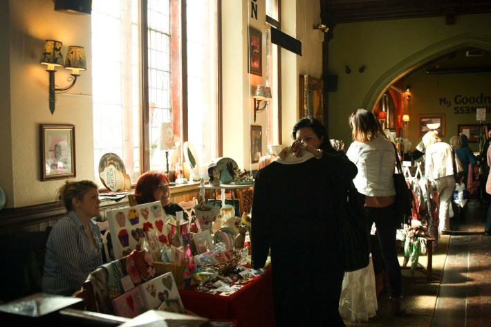 A bustling and atmospheric market at the 'The Village' in the heart of Muswell Hill Broadway