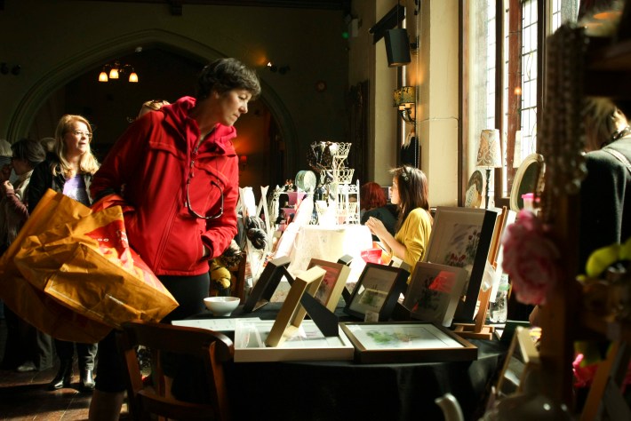 A bustling and atmospheric market at the 'The Village' in the heart of Muswell Hill Broadway